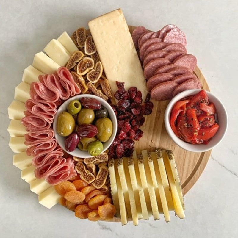 Take your presentation to the next level by adding our specially designed cheese and charcuterie bamboo grazing board to your order. The perfect backdrop for your culinary creations, it ensures your spread is both visually stunning and easily accessible.