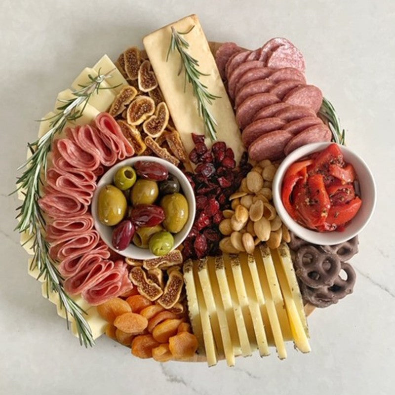 - Add a cheese and charcuterie bamboo grazing board at checkout for an optimal display.